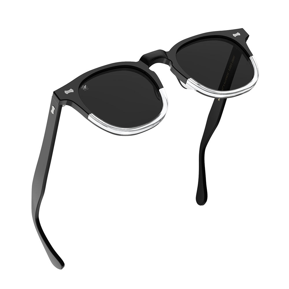 HxA Classic Jhonny glasses are a tribute to the iconic vintage styles of the 60s that have become cult objects thanks to American cinema. These glasses have been handcrafted with extraordinary attention to detail using high quality solid acetate which has been hand polished to create a sleek and sophisticated black and clear color finish.